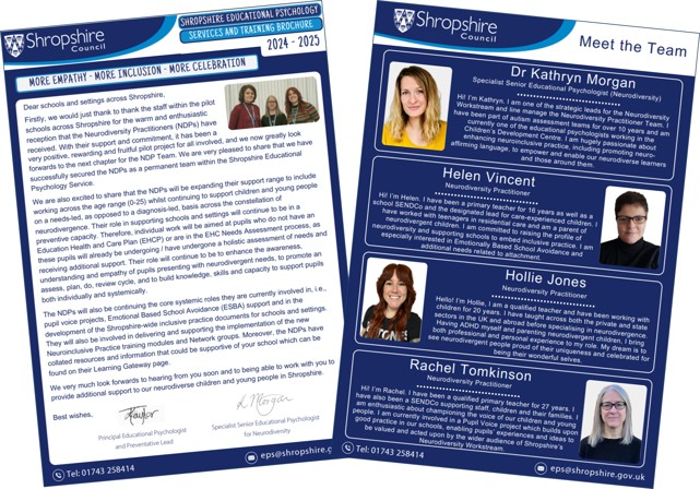 Please contact the Educational Psychology Service on 01743 258414 or eps@shropshire.gov.uk to contact the Neurodiversity Practitioner Team